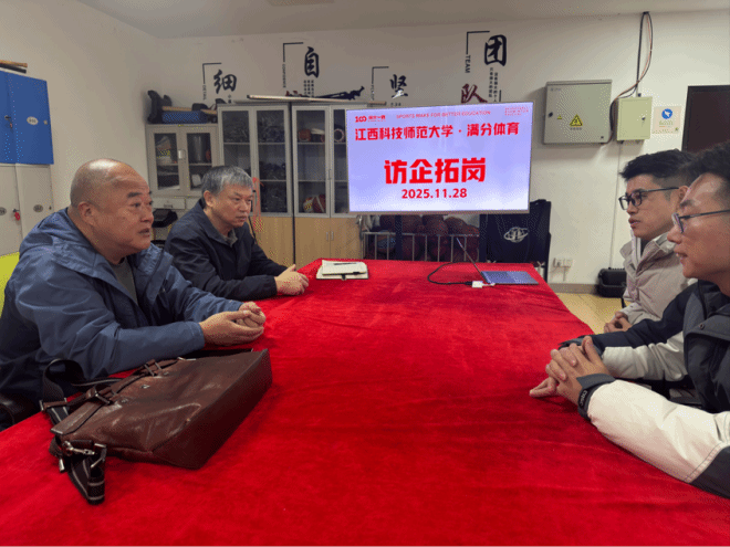 11月28日,江西科技师范大学体育与健康学院党委副书记赵清良,22级毕业班班主任胡小浪赴满分体育开展“访企拓岗促就业”专项交流活动。